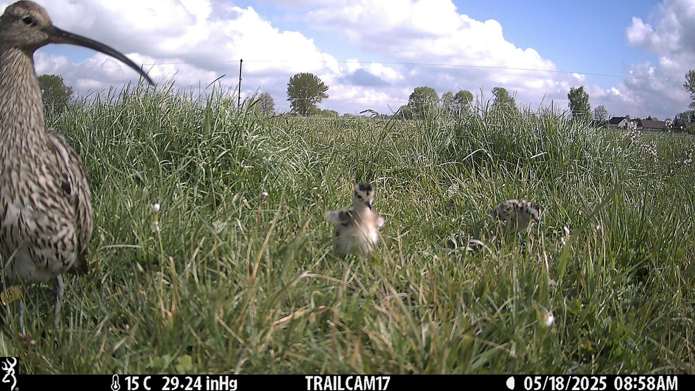 Unfortunately, unexpected situations do occur—reminders of how even small ecological disruptions can impact local bird populations. In one of the areas densely populated by Curlews, a Lesser Spotted Eagle also has its territory. A few years ago, we witnessed the Eagle raiding a Curlew nest. In the years that followed, Curlew nests in that area—fenced by us—were successful, and chicks always fledged. But this year, with exceptionally low vegetation and dried-out meadows (and possibly a local shortage of rodents?), the Curlew clutches became especially attractive to the Eagle. Within a few days—based on camera trap footage—it appears that the same Eagle destroyed all the Curlew nests in the area, both fenced and unfenced.
