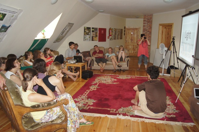 Korzystając ze sprzyjających okoliczności przyrody codziennie wędrujemy po samej Białowieży i okolicach, podziwiamy piękno puszczy w Białowieskim Parku Narodowym, ale też mieliśmy okazję poznać północną część puszczy, gdzie realizowano program małej retencji. Trwają warsztaty z fotografem Markiem Kosińskim, w tym wspólne wyprawy w plener i praca nad materiałem fotograficznym. Podsumowaniem i efektem naszego spotkania będzie wystawa prac uczestników warsztatów.