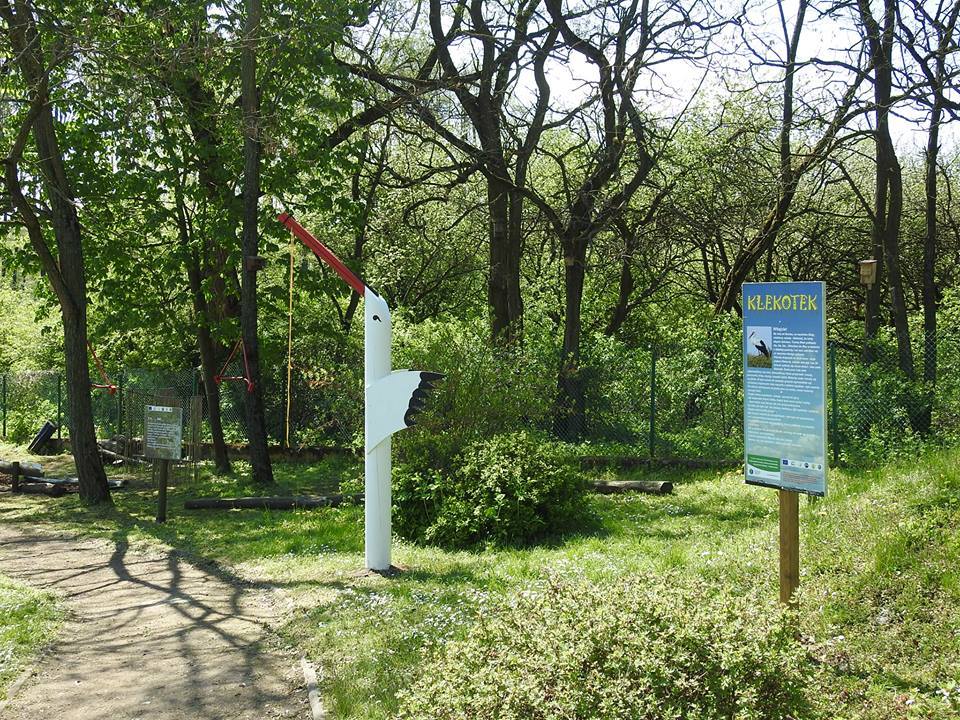 Na początku ścieżki na uczestników wycieczki czeka Klekotek, który na powitanie wydaje głośne kle kle kle i informuje wszystkich uczestników, że czas na spotkanie z przyrodą, a czekają na nich nie lada zadania. Cała wędrówka jest pod znakiem zagadek i wielu zręcznościowych zadań. Naturalne materiały, z których jest zbudowana pozwalają z pomocą wyobraźni przenieść się do świata natury.