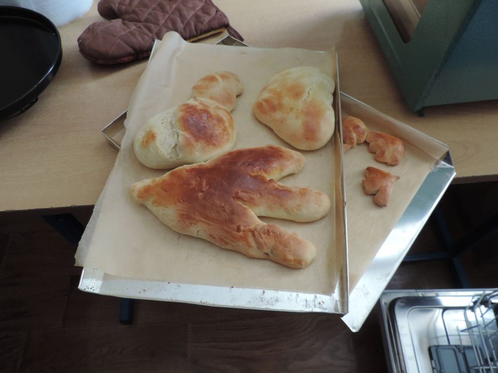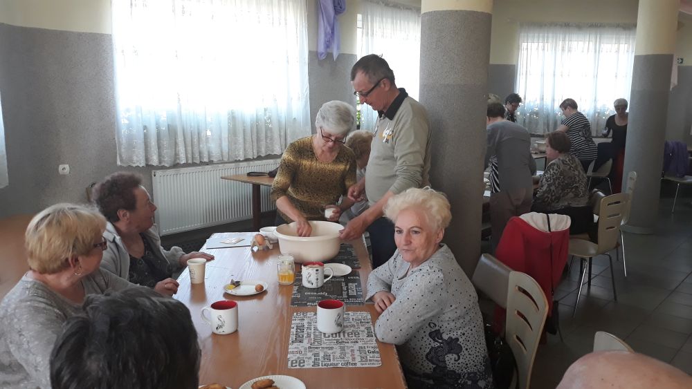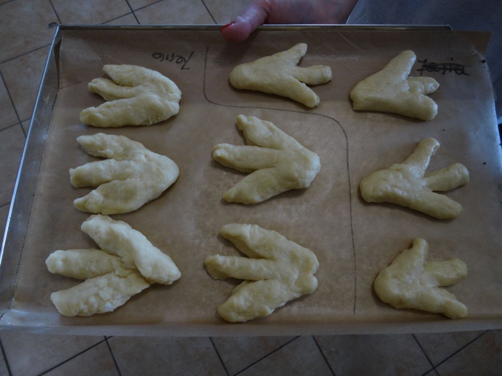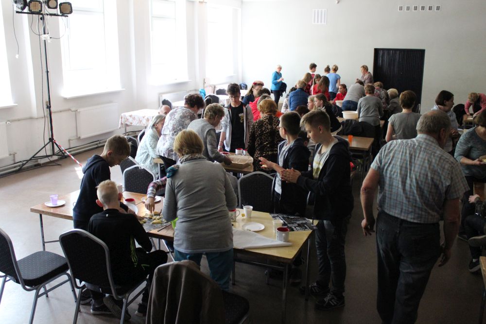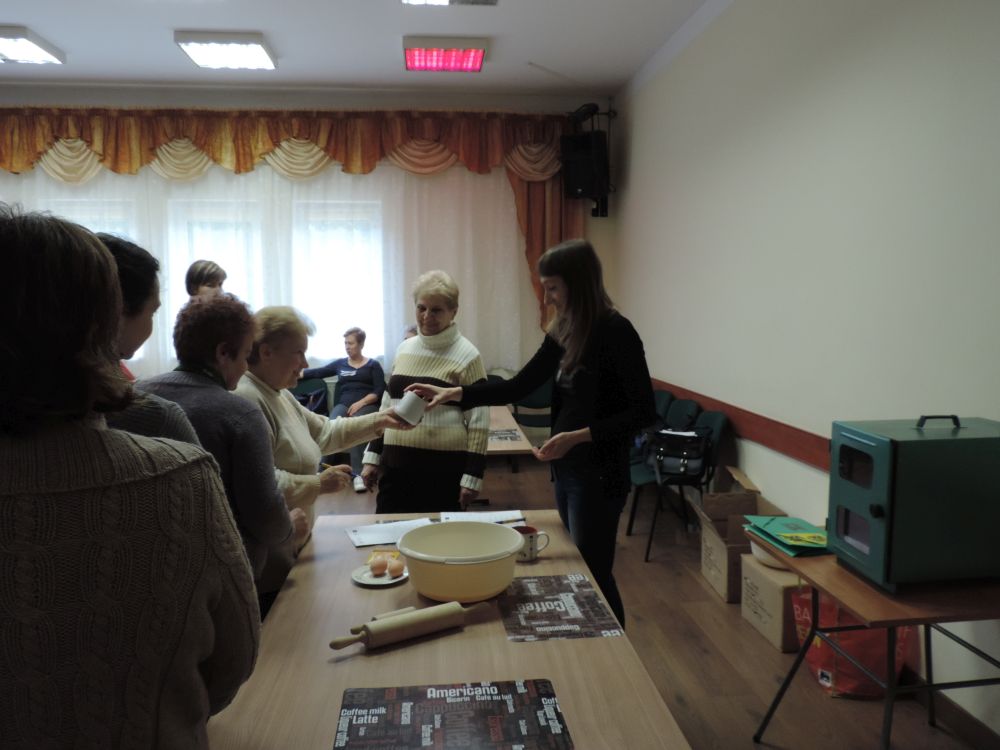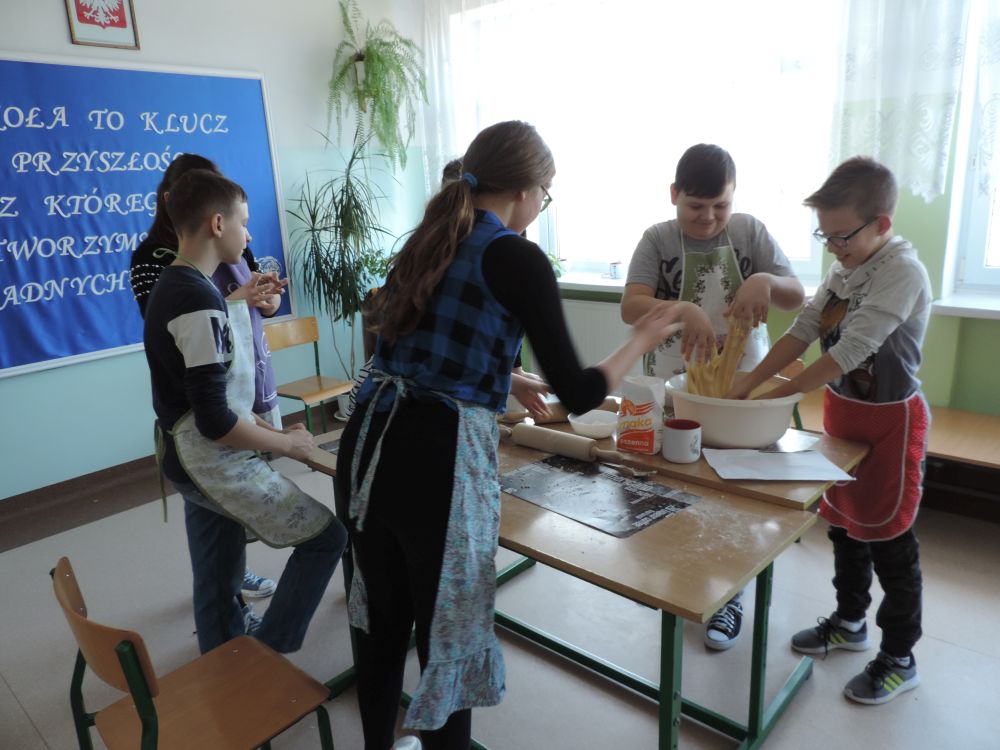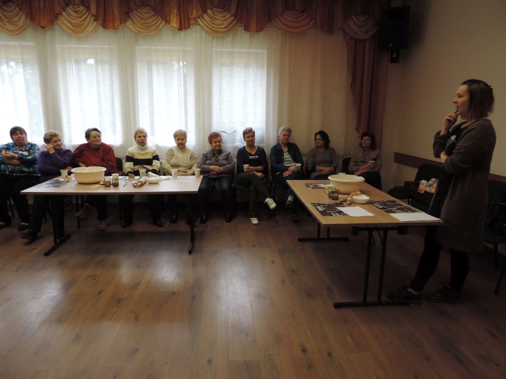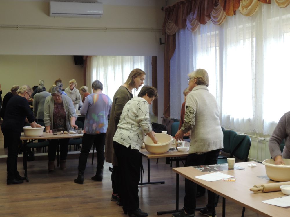 W tym roku, podobnie jak w poprzednim, zorganizowaliśmy 5 spotkań z mieszkańcami gmin objętych projektem w celu wspólnego pieczenia bocianich łap. Wszystkie spotkania bardzo się udały, cieszyły się dużym zainteresowaniem dorosłych i dzieci. Uczestnicy zapoznali się z zapomniana tradycją, którą było pieczenie drożdżowych bułek w kształcie czteropalczastej łapy bociana zwanych „busłowymi łapami”. W gwarze ludowej „busioł” oznaczał bociana. Ludzie wierzyli, że wkładając do gniazda „busłowe łapy”, zwabią ptaka znajdującego się na ich posesji, a dzięki temu szczęście i dostatek nie opuści ich przez cały rok. Gniazdo bocianie miało też chronić dom przed uderzeniem pioruna. Bułki piekło się 25 marca – w Kościele katolickim jest to ważne święto „Zwiastowania Najświętszej Marii Panny”. Dla każdego uczestnika mieliśmy upominek w postaci naszego projektowego kubka.