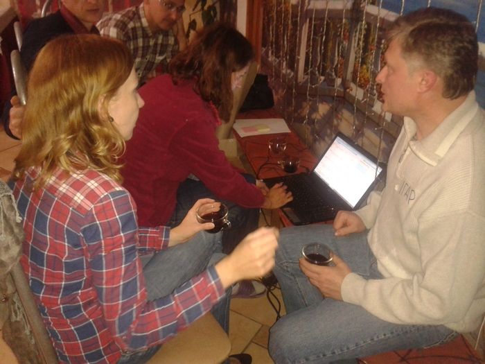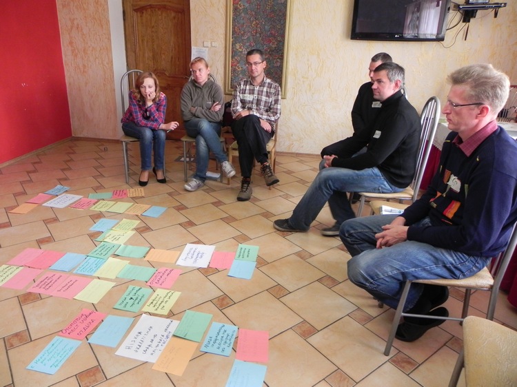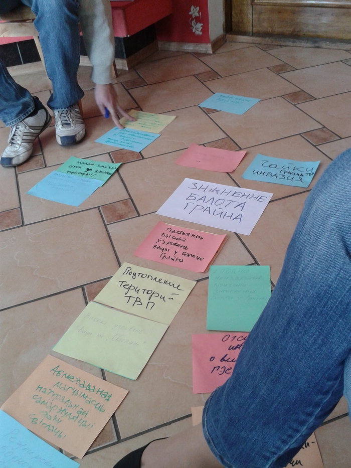Pracę zaczęliśmy w piątek, najpierw obejrzeliśmy teren, następnie do późna w nocy obradowaliśmy w ruskiej bani. Później nie było już tak przyjemnie, w sobotę pracowaliśmy od rana do wieczora, a w niedzielę do obiadu wypełniając matrycę logiczną projektu. Ostatecznie z wielu problemów, które występują na terenie doliny Świsłoczy i Niemna skupiliśmy się na dwóch: edukacji ekologicznej lokalnej społeczności i opracowaniu planu działania dla terenu bagna Grajna, które zostało zatopione w wyniku budowy zapory i elektrowni wodnej. Na bagnie Grajna, które jest wielkości ok 1,5km2 obserwowano 30-50 samców wodniczki. Po podniesieniu się poziomu wód o ok. 1 m teren zmienił się w jezioro z kolonią mewy śmieszki.