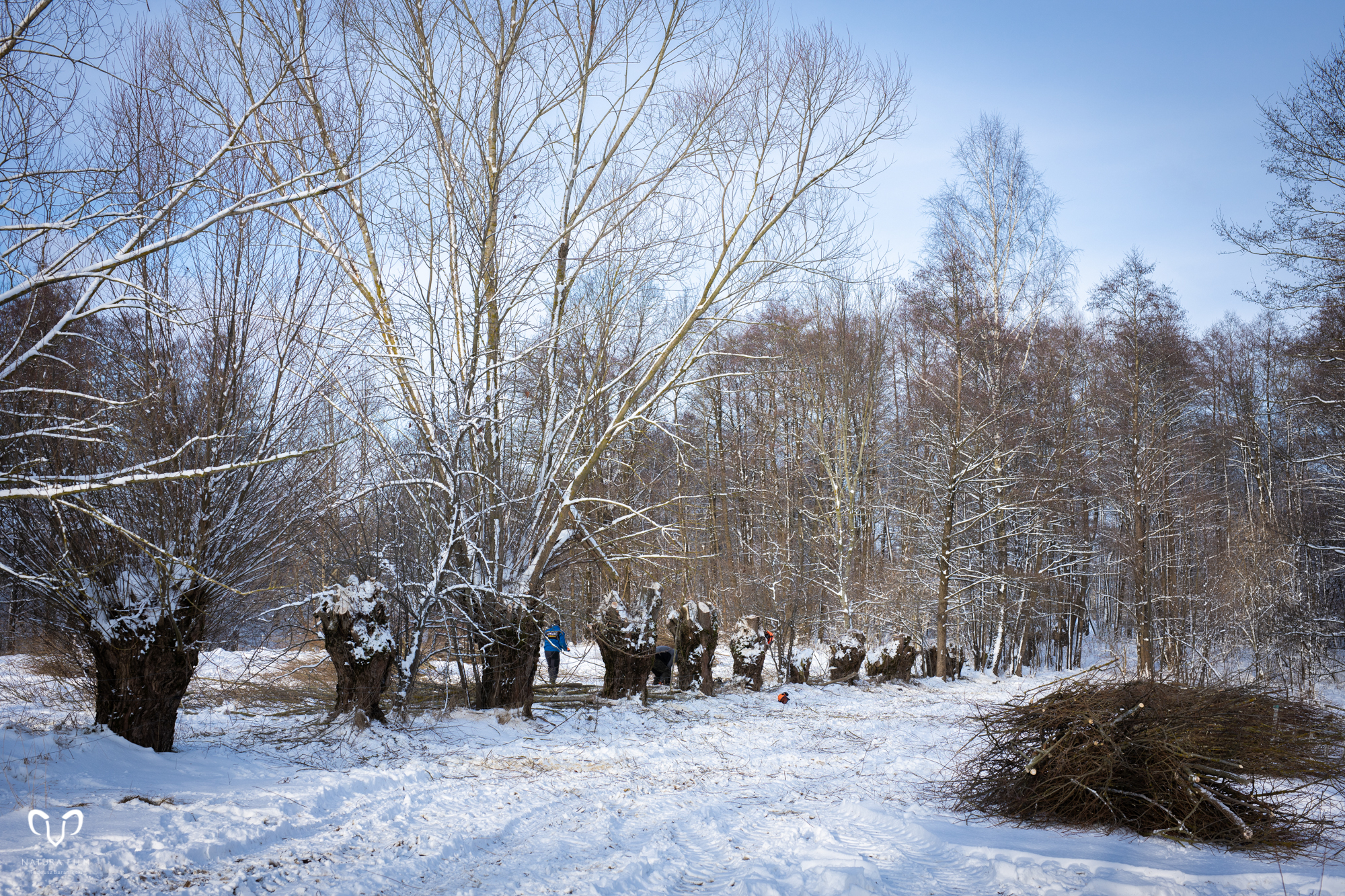 Mróz i śnieg zmotywował nas do wskrzeszenia po 2-letniej przerwie Akcji Wierzba, czyli ogławiania wierzb w Żywkowie. Chodzi o to, aby obciąć wierzbom głowiastym gałęzie zanim przerosną na tyle, że spowodują przełamanie się drzewa.