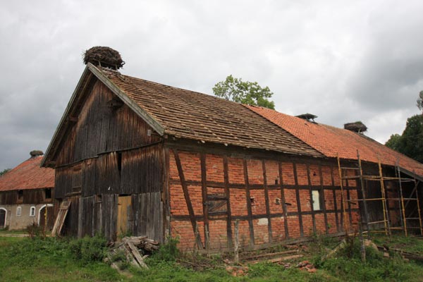Ogłaszamy wszem i wobec, że w Żywkowie rewolucja! Już na początku zeszłego tygodnia rozpoczęły się prace remontowe budynku gospodarczego. Na pierwszy ogień poszła dachówka, która jest już zdjęta i złożona na terenie gospodarstwa. Kolejnym etapem remontu będzie usunięcie wypełnienia muru pruskiego oraz usunięcie belek podwalinowych. Mamy nadzieję, że niebiosa będą dla nas łaskawe i pogoda pozwoli na sprawne wykonywanie prac. O kolejnych etapach będziemy informować sukcesywnie. Remont ma się zakończyć do końca listopada a za rok zabierzemy się za oborę i budynek mieszkalny, który stanie się centrum edukacyjno-informacyjnym.