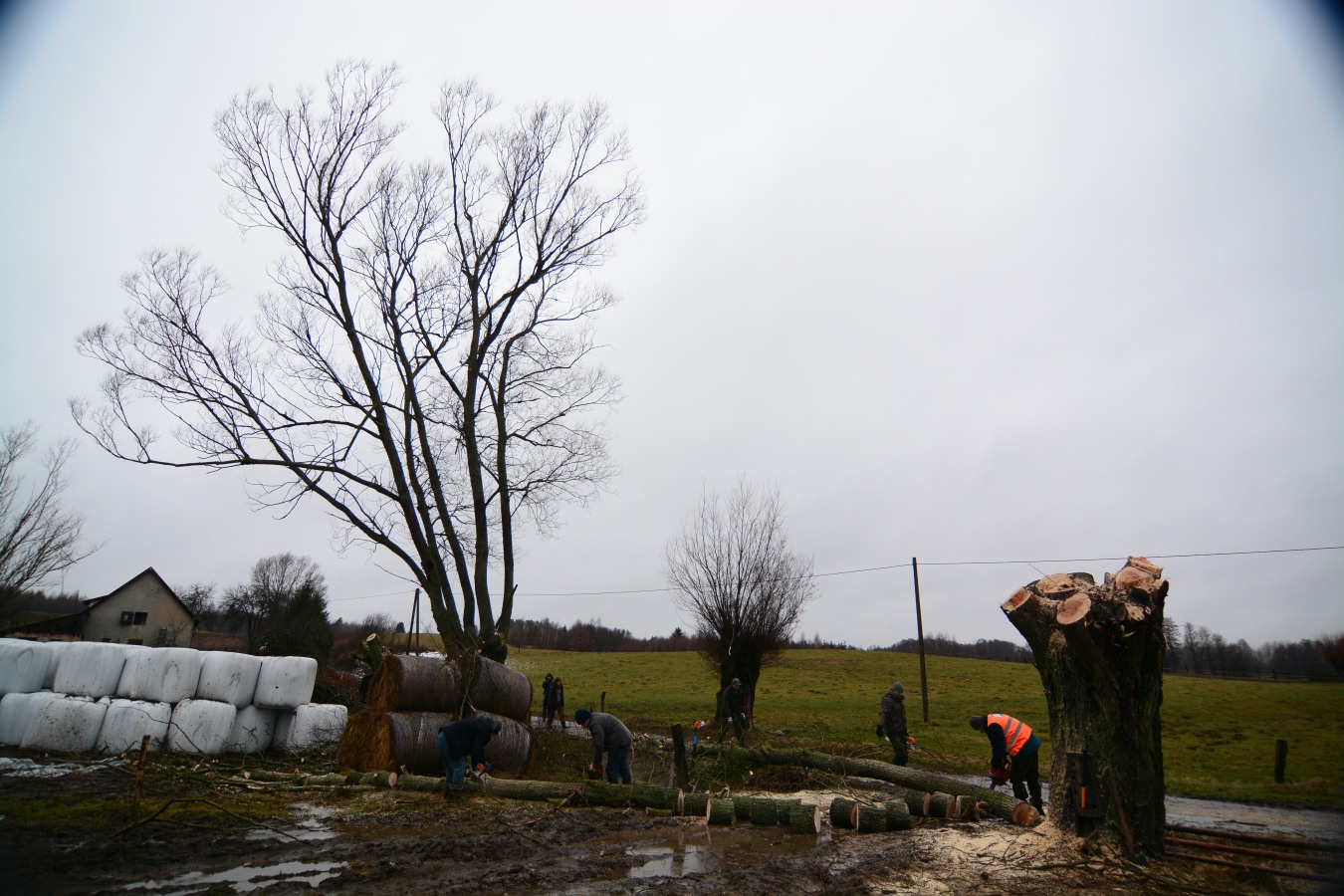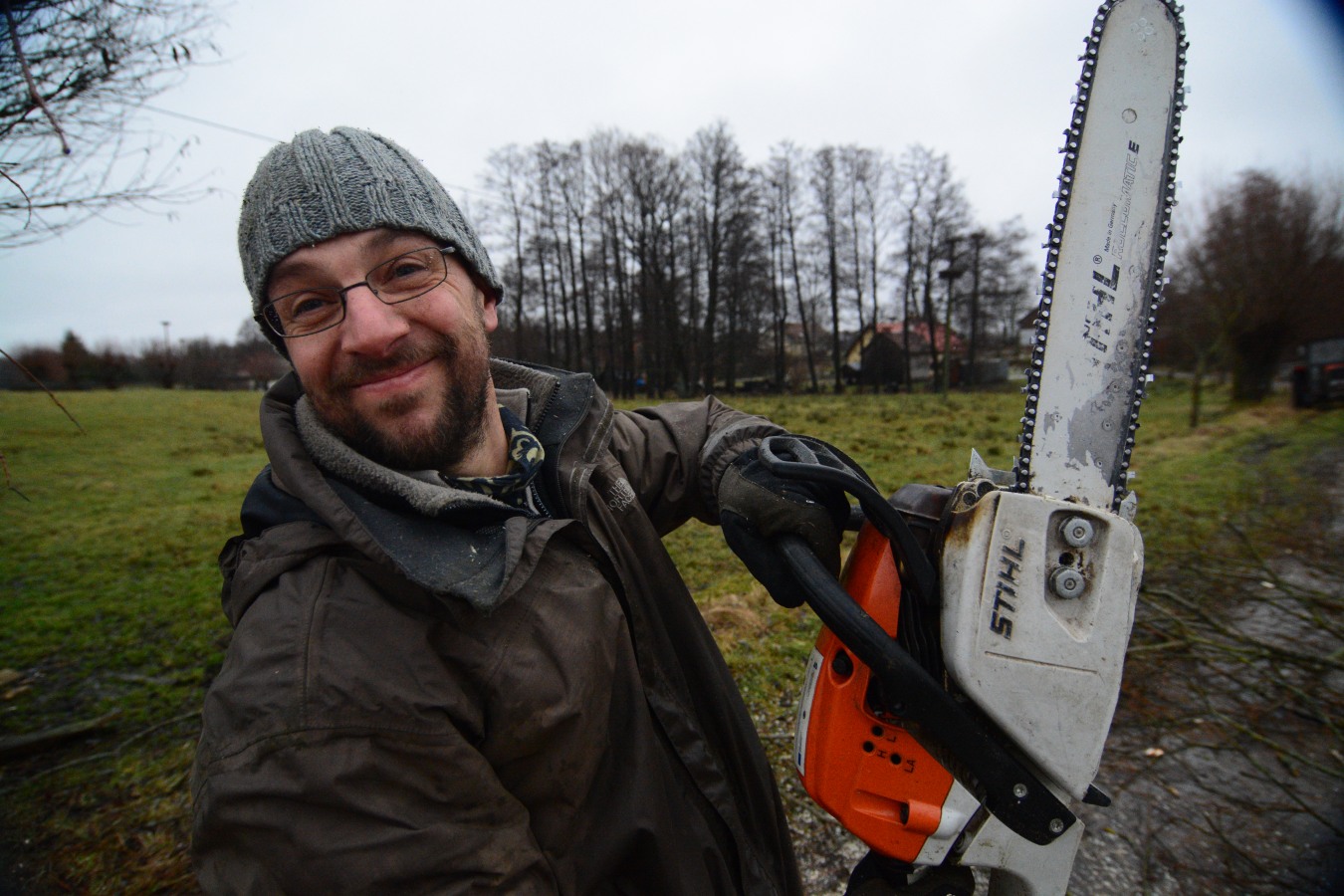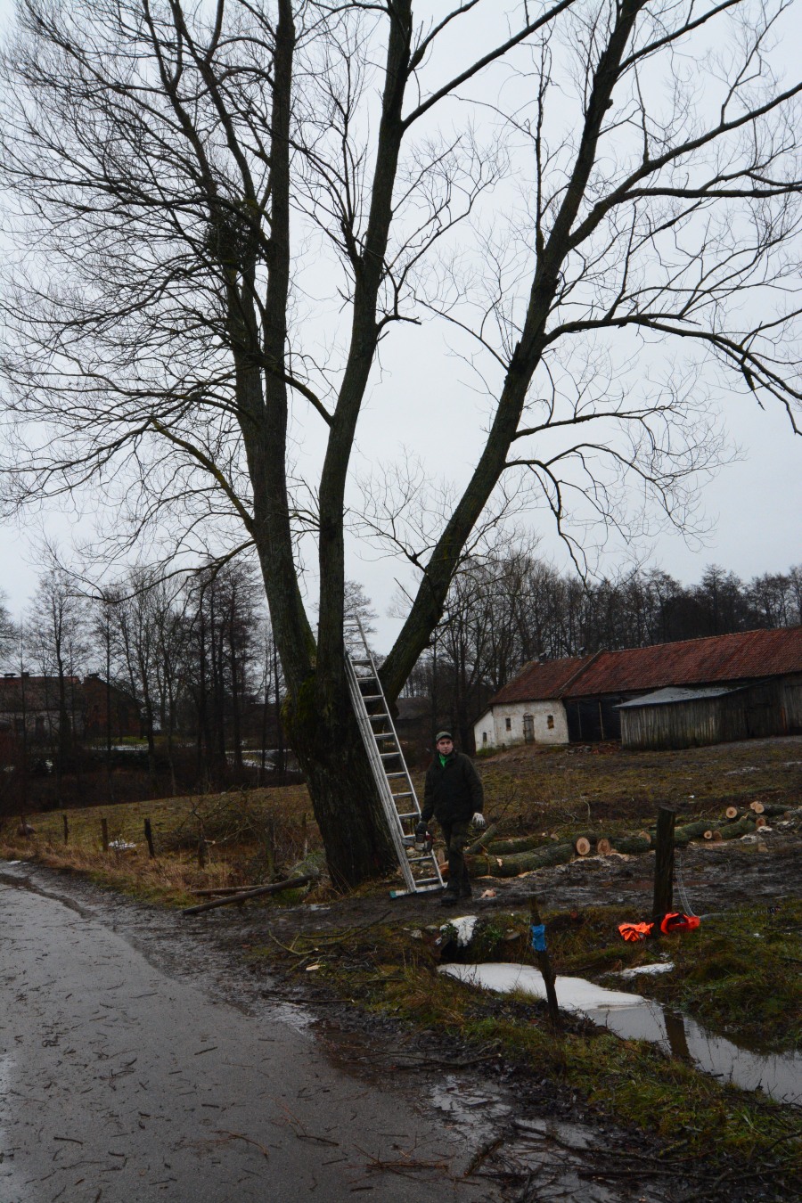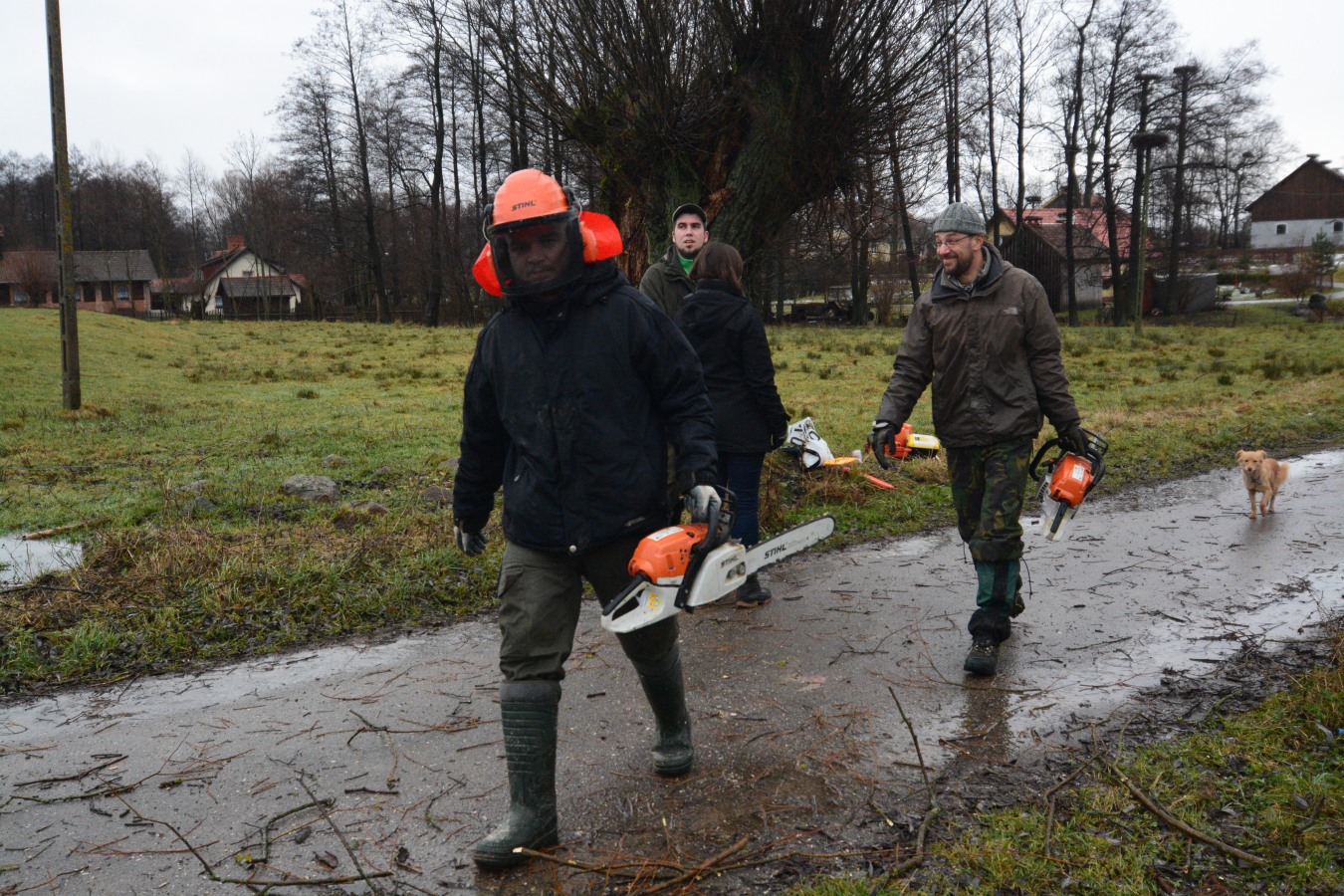 To była akcja dla prawdziwych twardzieli. Nie padało przez pierwsze 3 godziny a potem... szkoda gadać, ale udało się! Ogłowiliśmy 4 wierzby, co stanowi 133% planu! Na akcję wolontariusze zjechali się już w piątek, aby można było spokojnie pogadać przy herbacie i waflu (dziękujemy Lucjan, były pyszne!). Rano po pysznym śniadaniu, które stanowiła jajecznica ze świeżych jaj od żywkowskich kur grzebiących, ruszyliśmy do pracy. Początkowo szło dość opornie, ale już po kilku chwilach nabraliśmy wprawy i gałąź za gałęzią... ogłowiliśmy 4 wierzby. Drewno od razu było wrzucane na przyczepę i wywożone do gospodarstwa właścicieli wierzb. W akcji uczestniczyło 10 mężczyzn + 2 kobiety donoszące herbatę i ciasto oraz Pliszka :) Podczas pracy nad naszymi głowami od rana ciągnęły z Obwodu Kaliningradzkiego na wysypisko (takie są domysły) mewy srebrzyste, których naliczyliśmy min. 500 os. Po południu z kolei wracały w stronę Zalewu Wiślanego. Akcję zaliczamy do trudnych, ale udanych. Dziękuję wszystkim, którzy nie zrazili się pogodą i przyjechali. Dziękuję też Tadziowi za zdjęcia. Mam nadzieję, do zobaczenia niebawem na kolejnym czynie. Sebastian Menderski