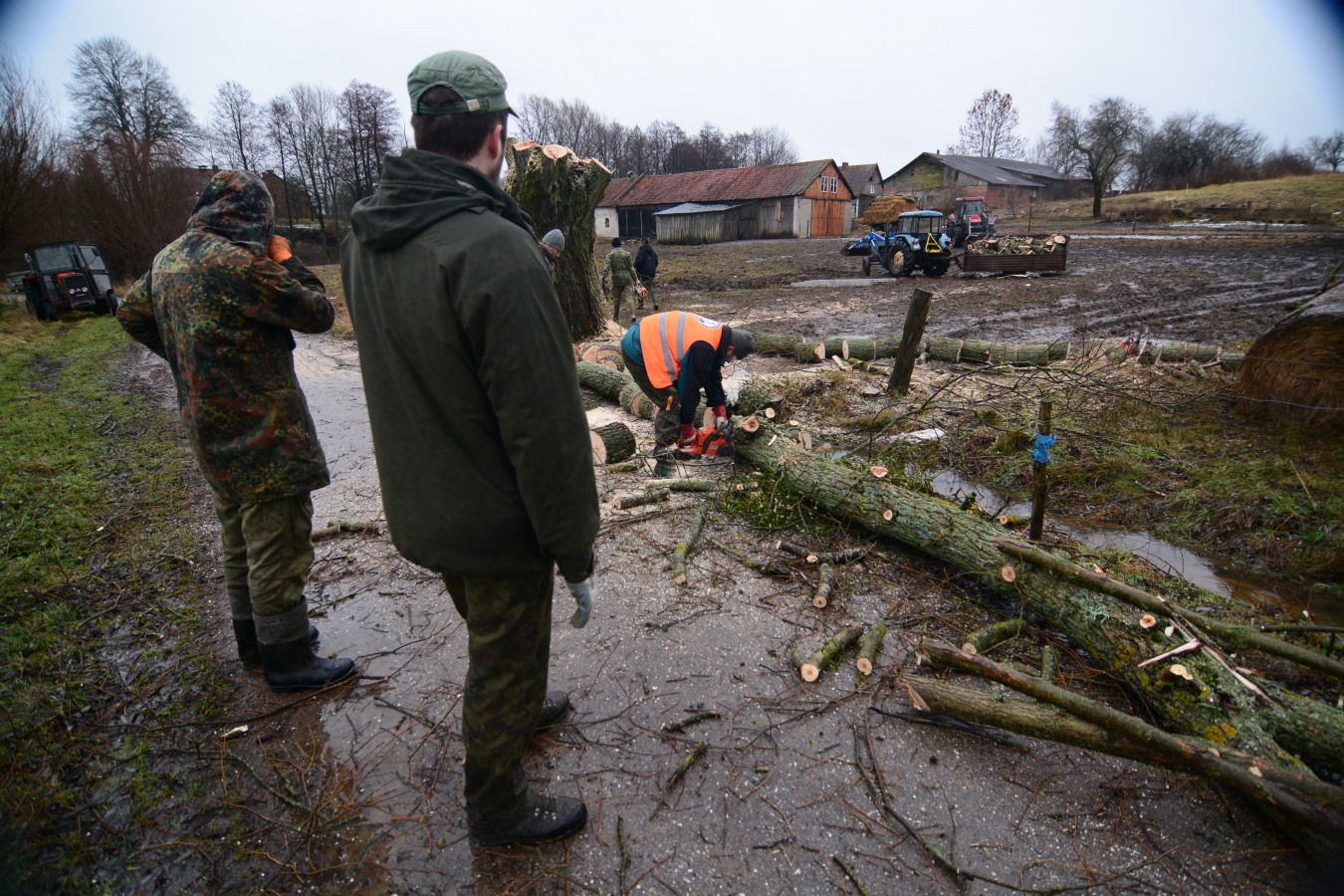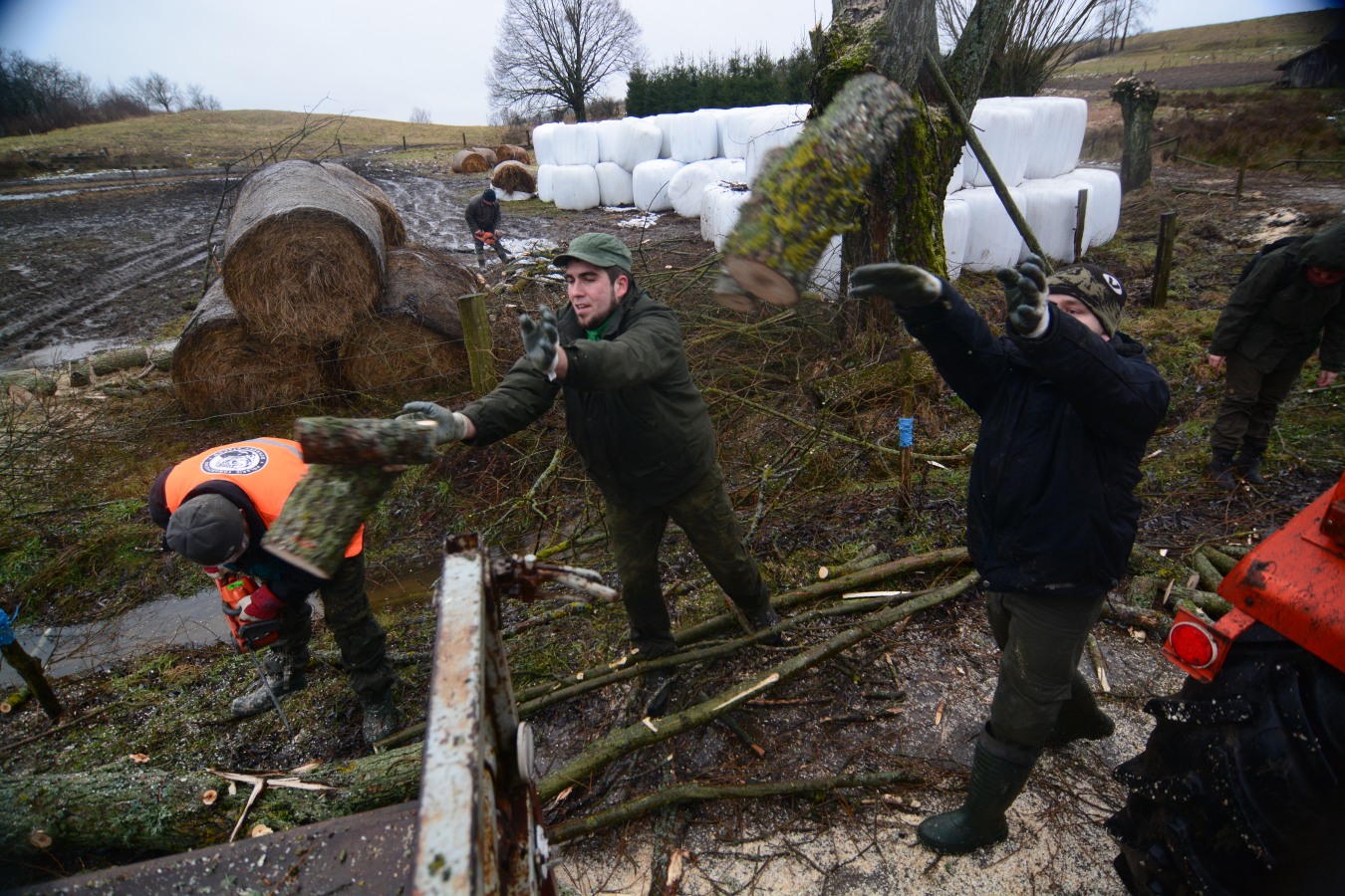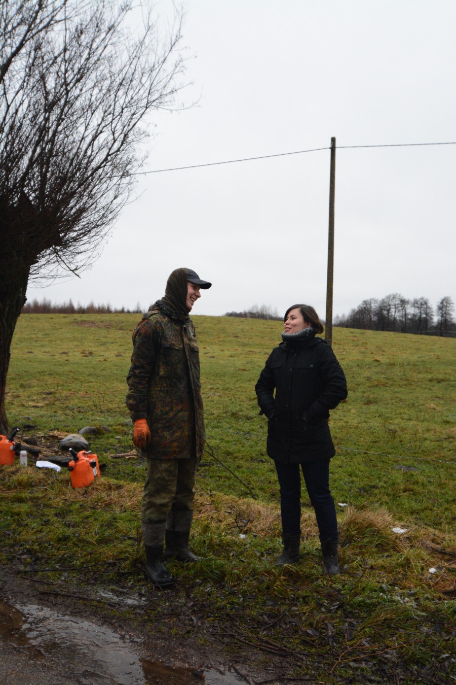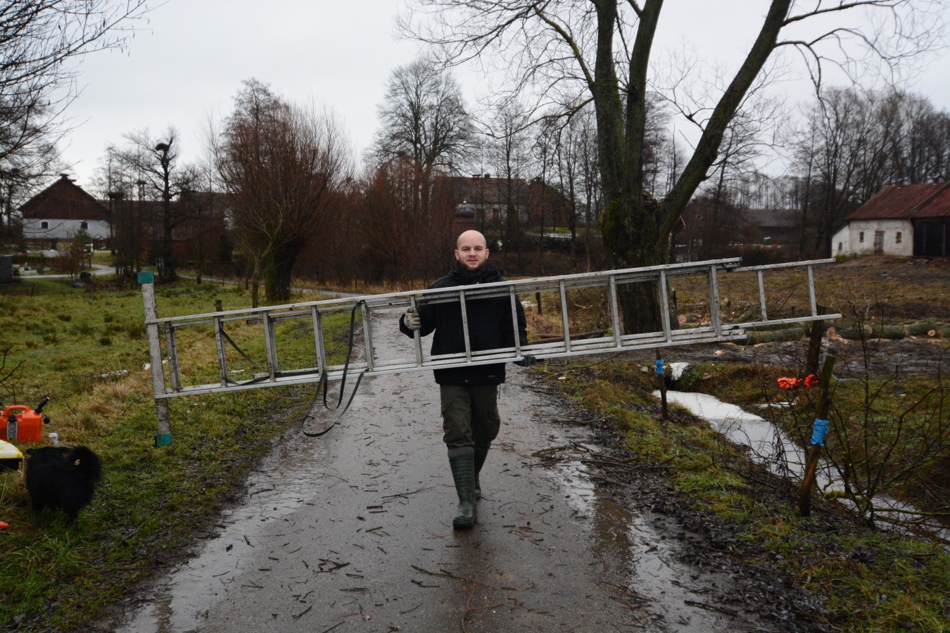To była akcja dla prawdziwych twardzieli. Nie padało przez pierwsze 3 godziny a potem... szkoda gadać, ale udało się! Ogłowiliśmy 4 wierzby, co stanowi 133% planu! Na akcję wolontariusze zjechali się już w piątek, aby można było spokojnie pogadać przy herbacie i waflu (dziękujemy Lucjan, były pyszne!). Rano po pysznym śniadaniu, które stanowiła jajecznica ze świeżych jaj od żywkowskich kur grzebiących, ruszyliśmy do pracy. Początkowo szło dość opornie, ale już po kilku chwilach nabraliśmy wprawy i gałąź za gałęzią... ogłowiliśmy 4 wierzby. Drewno od razu było wrzucane na przyczepę i wywożone do gospodarstwa właścicieli wierzb. W akcji uczestniczyło 10 mężczyzn + 2 kobiety donoszące herbatę i ciasto oraz Pliszka :) Podczas pracy nad naszymi głowami od rana ciągnęły z Obwodu Kaliningradzkiego na wysypisko (takie są domysły) mewy srebrzyste, których naliczyliśmy min. 500 os. Po południu z kolei wracały w stronę Zalewu Wiślanego. Akcję zaliczamy do trudnych, ale udanych. Dziękuję wszystkim, którzy nie zrazili się pogodą i przyjechali. Dziękuję też Tadziowi za zdjęcia. Mam nadzieję, do zobaczenia niebawem na kolejnym czynie. Sebastian Menderski