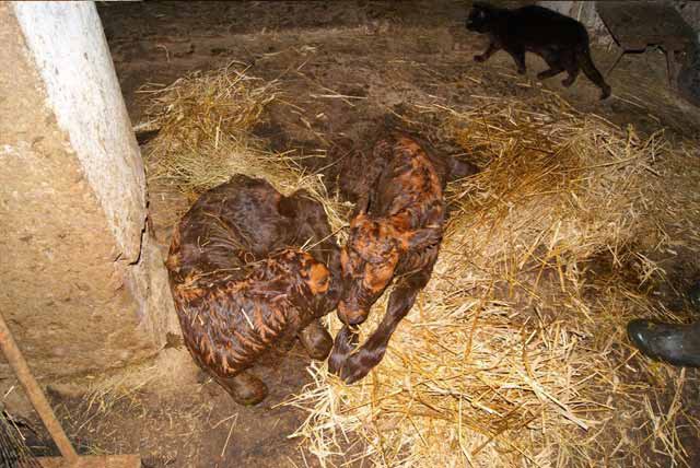 Wielkie wydarzenie w gospodarstwie w Żywkowie - w nocy z 04 - 05.04.2011 r., całkowicie samodzielnie jedna z naszych krówek (Potulna) urodziła bliźniaki. Świat przywitała jałóweczka i byczek. Cielaczki od samego początku były ciekawe wszystkiego, ale najbardziej czekały na pierwsze mleczko, czyli siarę od mamuni. Po godzince już same stały i brykały w swoim kojcu. Porody bliźniacze zdarzają się 2-3 razy na sto rodzących krów. W Żywkowie po raz pierwszy urodziły się bliźnięta. Zarówno cielaczki jak i mama czują się świetnie.