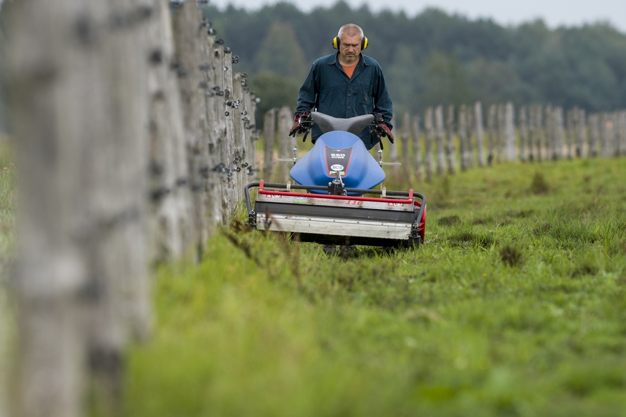 - ciągnika jednoosiowego na gąsienicach z dołączaną przednią kosiarką bijakową. Kosiarka była używana do wykaszania roślinności wzdłuż ogrodzeń elektrycznych. Wykaszanie było zabiegiem niezbędnym do utrzymania ogrodzeń w dobrym stanie technicznym i do zapewnienie ich prawidłowego funkcjonowania i skuteczności (wysoka roślinność, dotykająca stalowych linek pod napięciem, zaburza przepływ prądu, co może skutkować ucieczką zwierząt).