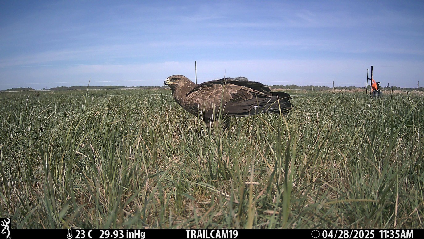 Unfortunately, unexpected situations do occur—reminders of how even small ecological disruptions can impact local bird populations. In one of the areas densely populated by Curlews, a Lesser Spotted Eagle also has its territory. A few years ago, we witnessed the Eagle raiding a Curlew nest. In the years that followed, Curlew nests in that area—fenced by us—were successful, and chicks always fledged. But this year, with exceptionally low vegetation and dried-out meadows (and possibly a local shortage of rodents?), the Curlew clutches became especially attractive to the Eagle. Within a few days—based on camera trap footage—it appears that the same Eagle destroyed all the Curlew nests in the area, both fenced and unfenced.