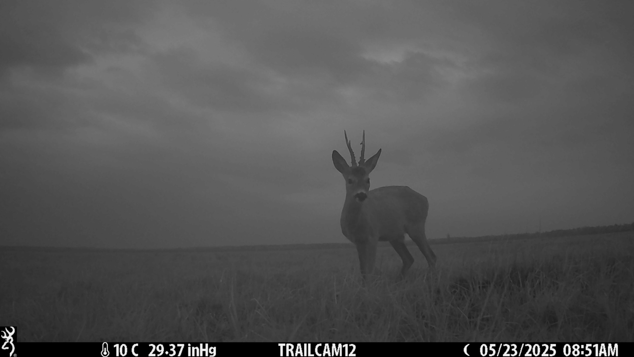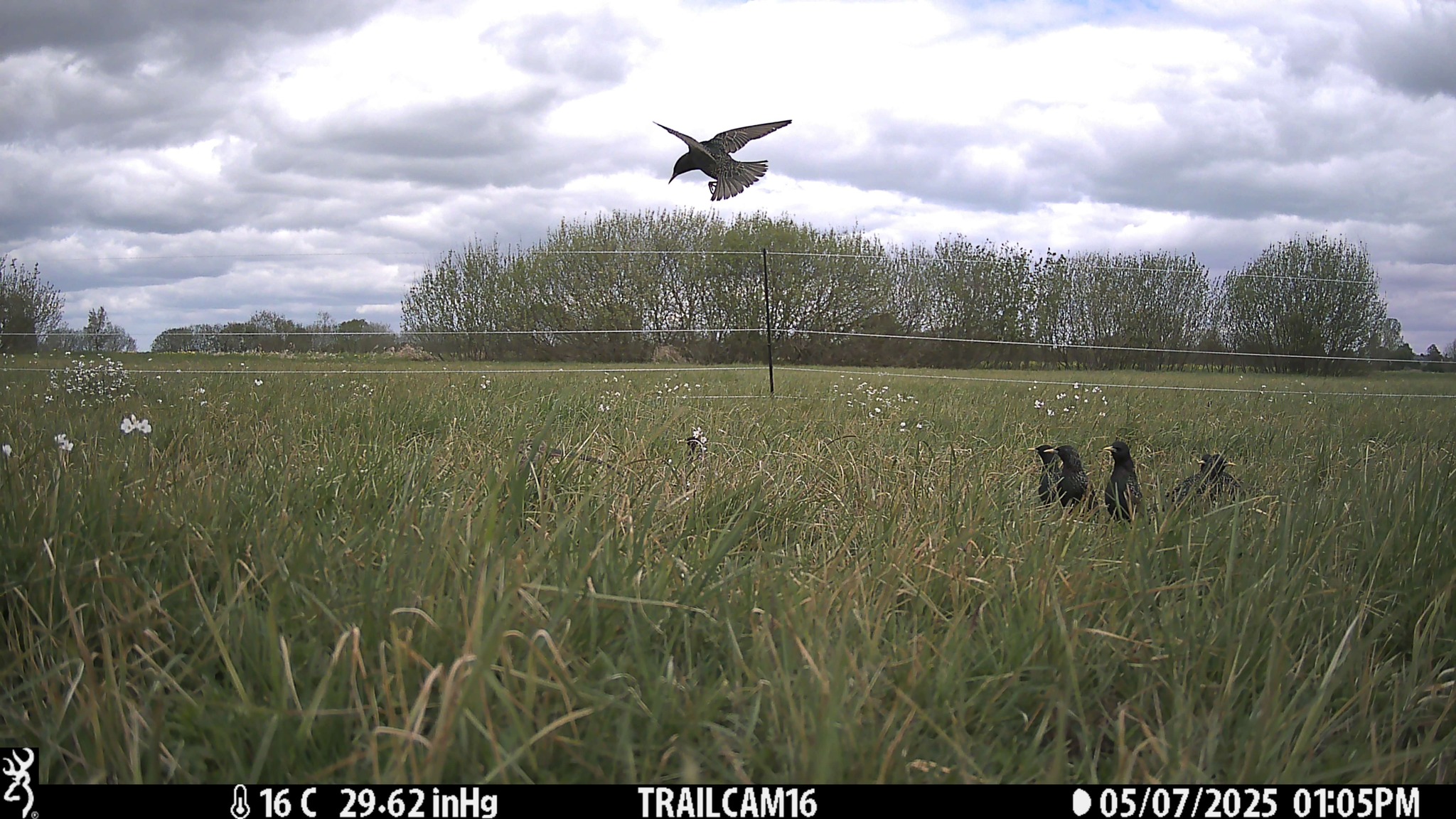 Today, we would like to share with you photos taken by camera traps set up near the nests of Eurasian Curlews in northern Podlasie region. Contrary to appearances, the habitats of the Curlew are not only semi-wild, remote areas. These also include intensively used meadows, often located a short distance from farm buildings. Curlews are often disturbed by agricultural equipment passing nearby, and sometimes dogs or farm cats running loose in the meadows, although fortunately they were not photographed here. Chicken coops located in villages also attract foxes, which are the main threat to eggs and young birds. Birds of prey and corvids pose a mortal danger. Camera traps recorded a Lesser Spotted Eagle plundering a nest and a Hooded Crow. Sometimes, however, there are other interesting but completely harmless visitors, such as Partridges, deer, or curious, ubiquitous Starlings.