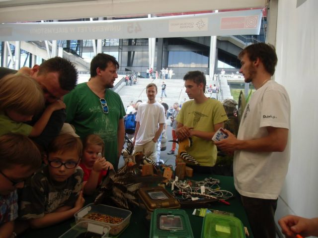 During the 17th Science Picnic, which took place at the National Stadium in Warsaw, the Institute of Biology of the University of Białystok was one of the presenting institutions. The students brought along a piece of the Podlasie wetlands. There were wooden bird figurines, bird rings, photos of animals, living insects, and, on T-shirts, great snipes from the upper Narew River Valles were proudly presented. Over 5 thousand people visited the stand. Many visitors had their photos taken in the company of a dummy wearing a T-shirt promoting our project. This way the great snipes made it up to the capital.