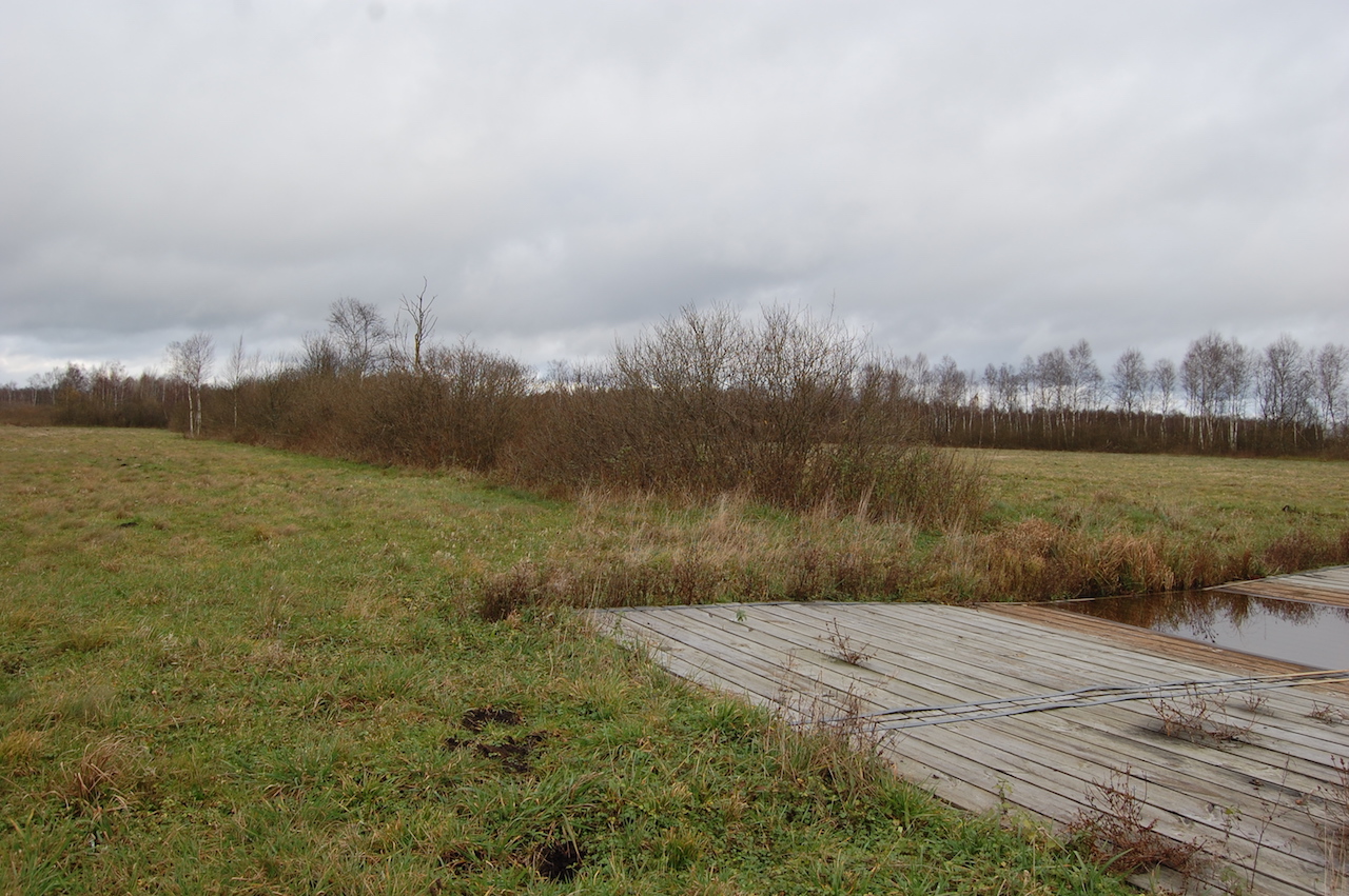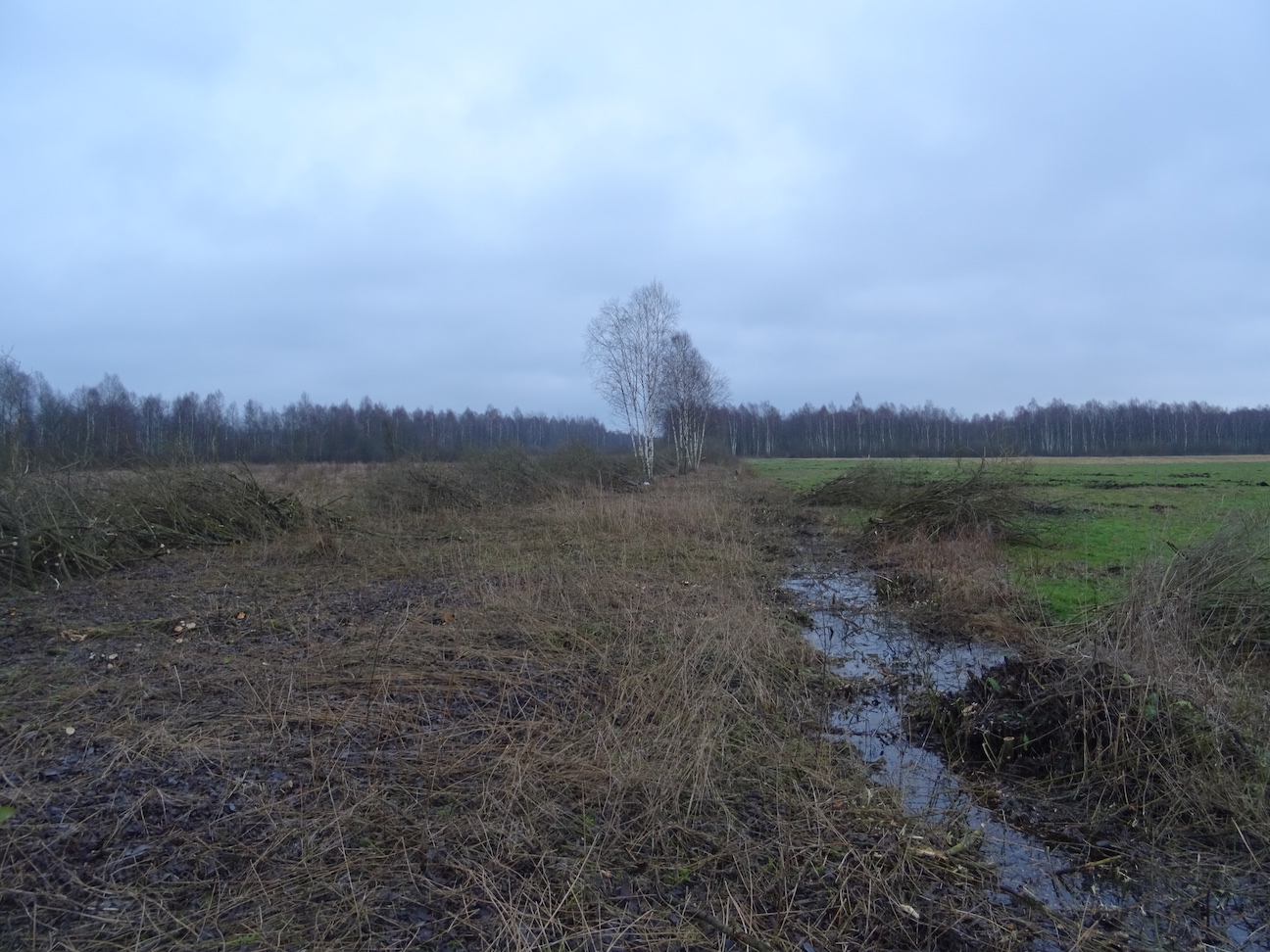 W styczniu br. w ramach realizacji działań ochronnych zredukowaliśmy na terenie rezerwatu zadrzewienia i zakrzaczenia na powierzchni 7 ha. Prace polegały na wycięciu krzewów i wywiezieniu ich poza obszar rezerwatu. Tym samym sumarycznie uzyskaliśmy jakże ważną dla ptaków siewkowych, otwartą powierzchnię wynoszącą ponad 30 ha. Łąki te obecnie użytkowane są kośnie. Czynna ochrona ptaków w tej części rezerwatu prowadzona jest przez nasze Towarzystwo już od 2008 r. Od tamtego czasu, w celu umożliwienia prowadzenia ochrony czynnej poprzez użytkowanie tego terenu, wybudowaliśmy 26 brodów drewnianych ułatwiających dojazd do najdalszych zakątków rezerwatu, nawet w niekorzystnych warunkach atmosferycznych.