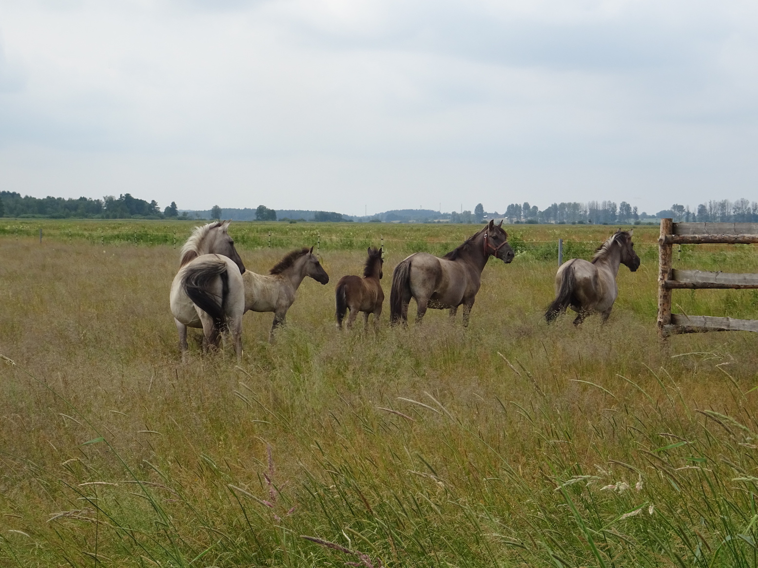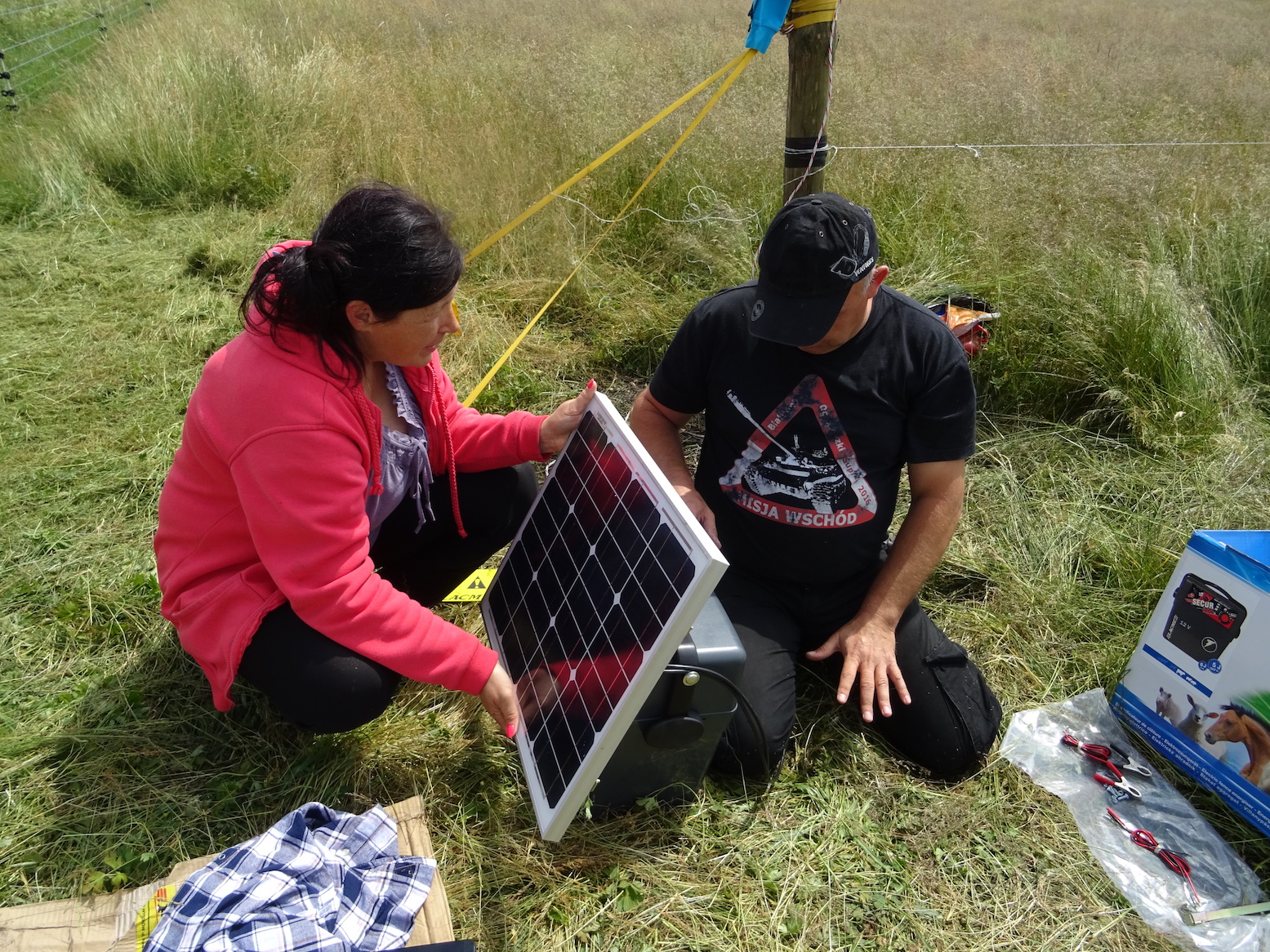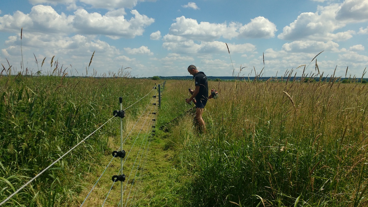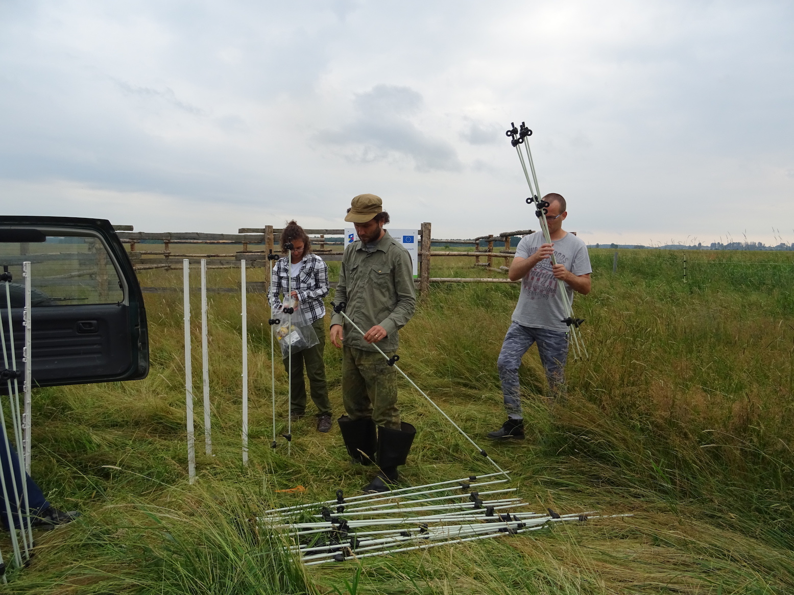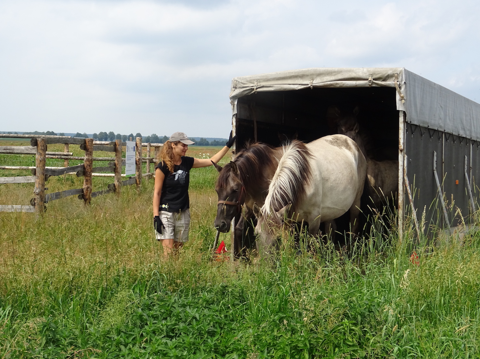 Na sam początek wzięliśmy się za przywiezienie poidła dla koników polskich oraz stawianie ogrodzenia, dzielącego powierzchnię działki na dwie kwatery. Naszym celem było zabezpieczenie stwierdzonych stanowisk gniazdowych ptaków siewkowych przed ewentualnym zdeptaniem przez koniki polskie, które następnego dnia zawitały na kwaterę. W ciągu 5 godzin postawiliśmy blisko 700 m. elektrycznego ogrodzenia. Kolejny dzień minął nam na podłączaniu nowego ogrodzenia pod prąd, przywożeniu ekipy wypasowej (tj. 7 klaczy wraz z 2 źrebakami i pilnującego całego stada ogiera) z Kalitnika, uzupełnianiu wody w poidle (a nie tak łatwo uzupełnić 500 litrowe poidło, gdy w pobliżu brak studni), podkaszaniu trawy wzdłuż ogrodzenia, a następnie, już w Kalitniku, na naprawie drewnianego ogrodzenia dla koni. W środę odpoczywaliśmy od pracy w terenie, w zamian skupiliśmy się na pracach porządkowych w Stacji Terenowej PTOP w Kalitniku. Następne dni to powrót do prac na Gródku, dalsze podkaszanie trawy wzdłuż płotu oraz uzupełnianie wody w poidle.