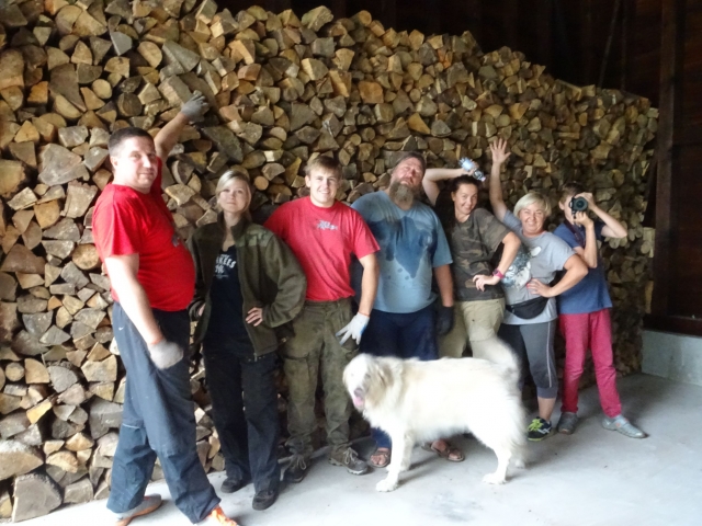W minioną sobotę skończyliśmy kolejny przeuroczy jakże workcamp w Kalitniku. Przez 6 dni pobytu uczestnicy spotkania m.in. uporządkowali pomieszczenia w drewnianej wiacie (zarzucili na strych liczne ilości desek, deseczek, słupków), a tym samym przygotowali miejsce na ustawienie maszyn rolniczych pod dachem na okres zimowy. W jednej z części wiaty wygospodarowaliśmy też miejsce na ułożenie drewna na opał. Mężczyźni wykonali w pierwszej kolejności konstrukcję podtrzymującą drewno, a następnie zimowy opał został ułożony w pokaźnym stosie pod dachem wiaty. Przez następne dwa dni zajęliśmy się budowaniem odłowni na jednej z PTOPowskich łąk pod Gródkiem, gdzie od paru miesięcy wypasane są koniki polskie. Spotkanie zakończyliśmy pracami związanymi z przygotowaniem materiału na ogrodzenie w pobliżu pierwszej kalitnickiej rabaty kwiatowej. Prace te polegały na dokładnym wyczyszczeniu słupków, które w przyszłym tygodniu zostaną pomalowane przez nowych wolontariuszy, a następnie miejmy nadzieje w przyszłym roku ustawione w ogrodzie, jako element ogrodzenia.