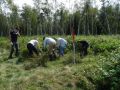 W kolejnych dniach uczestnicy spotkania udali się do Kowalowego Grodu na łąki należące do PTOP, aby powtórzyć zabiegi ochronne polegające na karczowaniu i usuwaniu wysokiej roślinności zielnej wokół stanowisk brzozy niskiej. Zabiegi tego rodzaju były wykonywane przez nas w latach poprzednich w ramach realizowanego projektu dotyczącego ochrony torfowisk Niecki Gródecko-Michałowskiej. W 2013 r. przeprowadziliśmy również pierwszy monitoring skuteczności prowadzonej ochronny czynnej tego reliktowego gatunku brzozy. Kontynuując prace ochroniarskie, wolontariusze po skończonej pracy, wykonali monitoring polegający na policzeniu odrastających pędów z każdego jej stanowiska.