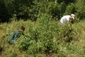 Czas na podsumowanie drugiego już spotkania z wolontariuszami w Kalitniku. Po poniedziałkowym przyjeździe do stacji, zapoznaniu się z Kalitnikiem i innymi uczestnikami, we wtorek wspólnie udaliśmy się do rezerwatu przyrody Jezioro Wiejki, aby odsłonić cztery stanowiska rosnącej tam brzozy niskiej (Betula humilis). Czynna ochrona tej brzozy prowadzona jest przez nasze Towarzystwo już od kilku dobrych lat. W poprzednich sezonach stanowiska te były przez nas kilka razy odkrzaczane w celu doświetlenia poszczególnych okazów. Dzięki temu tym razem ilość pracy nie była zbyt duża. Przez dwa dni, w promieniu kilku metrów od każdego krzaczka brzozy, usuwaliśmy odrastającą kruszynę, brzozę i wierzbę szarą. W miejscach tych wykosiliśmy też roślinność zielną. Przy okazji usunęliśmy też pokrzywy, które uniemożliwiały dojście do tablic informacyjnych, ustawionych w ramach realizowanego w latach poprzednich projektu dotyczącego ochrony torfowisk Niecki Gródecko-Michałowskiej.