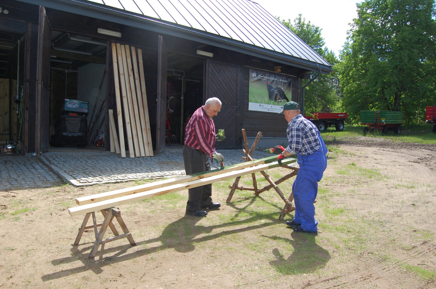 - okorowaliśmy żerdzie na ogrodzenie dla koników polskich,