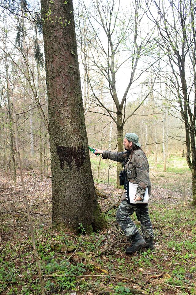 Większość ptaków buduje gniazda, niektóre już wysiadują jaja. Zaczyna się więc okres bardzo trudny dla ptaków. Przed nimi niemałe wyzwanie - ukryć gniazdo, wysiedzieć jaja i wyprowadzić pisklęta. Na każdym etapie lęgu ptakom grozi wiele niebezpieczeństw ze strony człowieka i zwierząt. Wśród tych drugich ptakom zagrażają przede wszystkim ssaki np. norka amerykańska czy kuna. W ramach projektu "Ochrona wybranych gatunków ptaków strefowych na 4 obszarach Natura 2000 w północno-wschodniej Polsce" postanowiliśmy nieco odstraszyć podstawowego drapieżnika ptaków strefowych tj. kunę. Nasi wykonawcy, ornitolodzy z Komitetu Ochrony Orłów, podczas kontroli gniazd polewają pnie drzew terpentyną balsamiczną. Jest to substancja, którą otrzymuje się z żywicy, o bardzo intensywnym zapachu zniechęcającym drapieżniki do wchodzenia na drzewa.