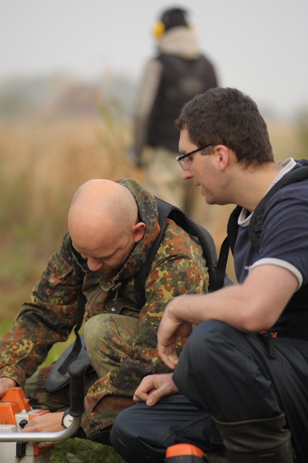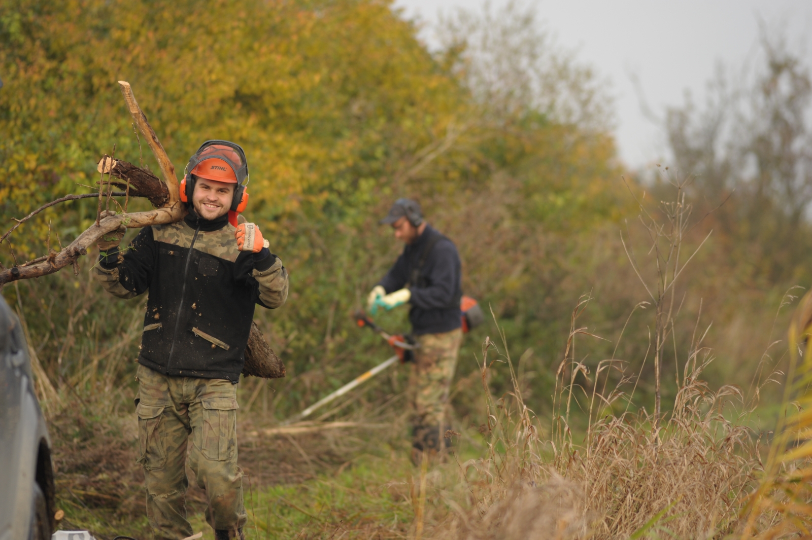 Tym razem wolontariusze i pracownicy PTOP przybyli na polder Kwiecewo. Cel? Udrożnić przejazd do stacji pomp, która jest własnością PTOP, dzięki czemu obsługa stacji (regulowanie poziomu wody) będzie sprawniejsze. Naszym celem było wykoszenie i podcięcie gałęzi na odcinku ok 400 m. Prace poszły sprawnie i w wyjątkowo przyjemnej aurze. Nad nami latały tysiące gęsi, które siadały na wodzie a do stacji pomp przyleciał jej stały bywalec - zimorodek. Obowiązkowym punktem naszych akcji jest ciepły posiłek z kociołka, na który wszyscy uczestnicy akcji czekali z niecierpliwością. Plan wykonaliśmy w 100% i wszyscy czekają już na kolejną akcję, na którą serdecznie zapraszamy i Was! Każdy, kto chciałby być powiadomiony o akcji telefonicznie, proszę o taką informację na