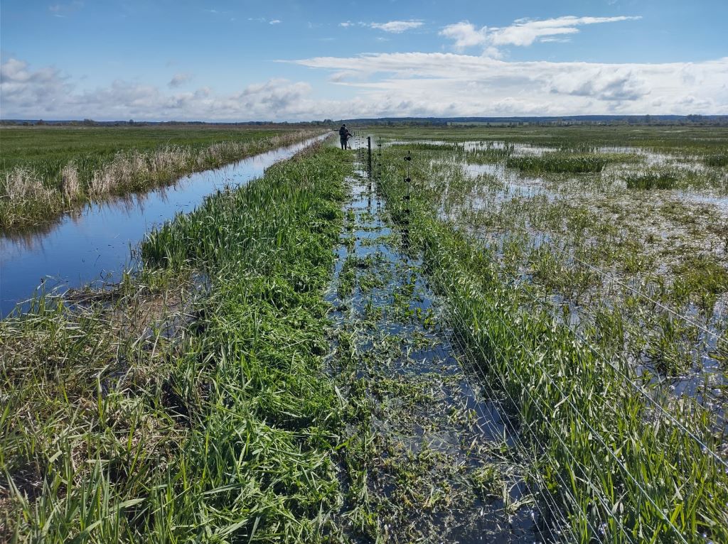 We dam up the water using gates in drainage ditches. These small devices will allow us to maintain a high groundwater level until mid-July, i.e. throughout the period of incubation and feeding of the young birds.