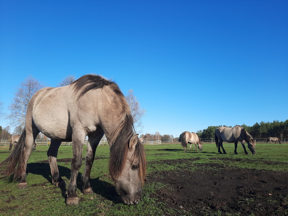 There are pastures around with a hundred horses to pet, walk with and ride. The nearby pine forest is a perfect spot for walks and horseback rides.