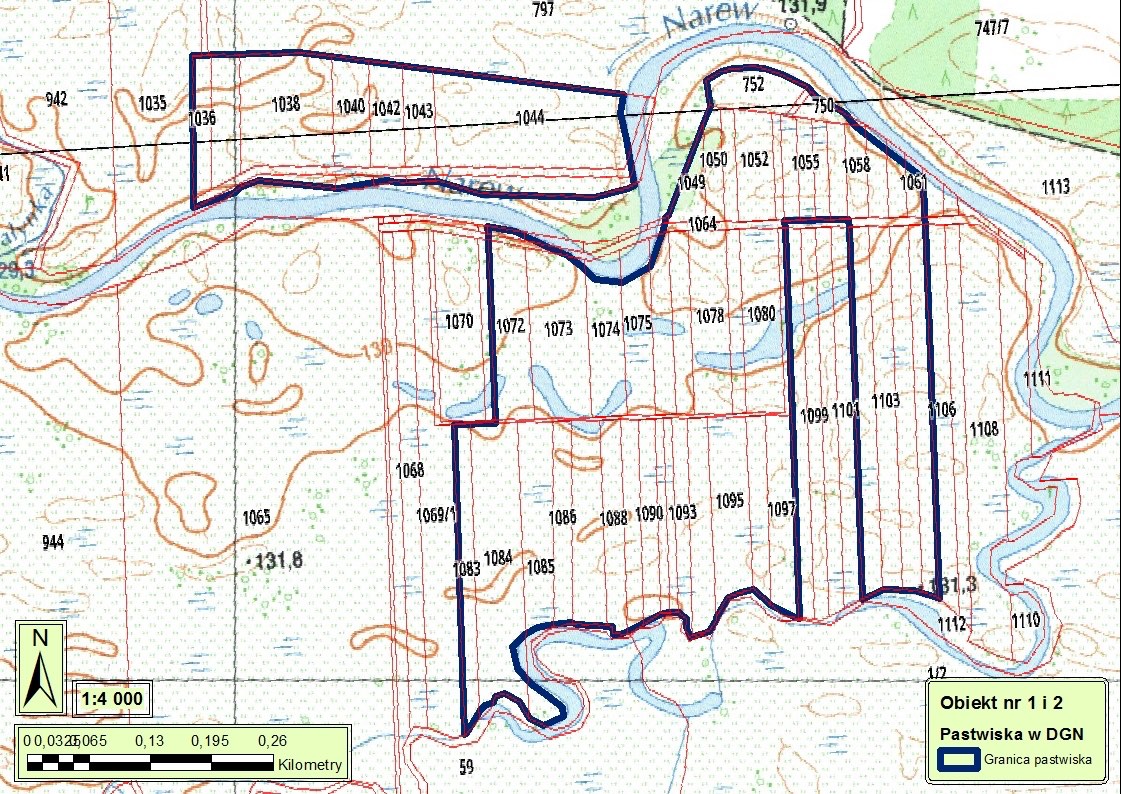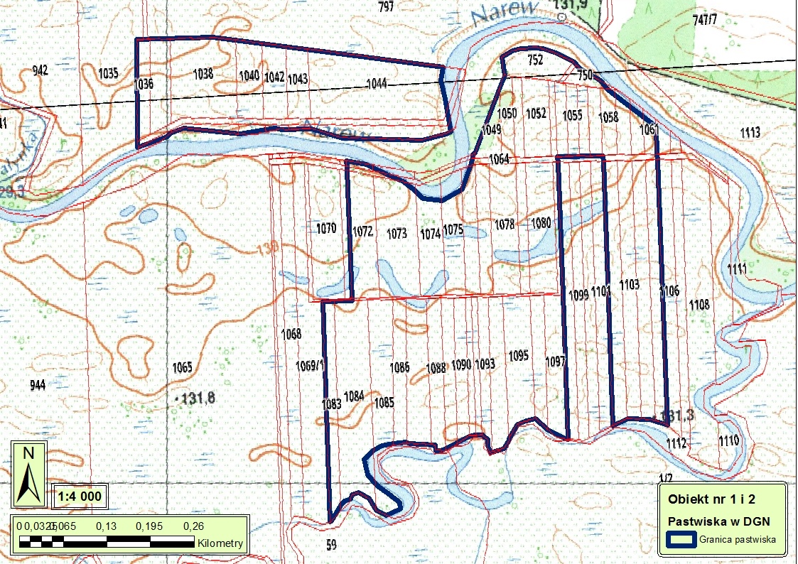 Przedmiotem zamówienia jest usługa polegająca na opracowaniu map zasadniczych sytuacyjno-wysokościowych, dokumentacji projektowej oraz uzyskanie prawomocnej decyzji o pozwolenie na budowę niezbędnych do przeprowadzenia inwestycji polegającej na wykopaniu 26 340 m2 wodopojów na 13 powierzchniach wypasowych poprzez odtworzenie fragmentów zarastających lub całkowicie zarośniętych starorzeczy Narwi lub jej dopływów.