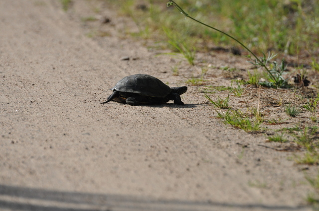 Jeżeli starorzecza, bagienka, torfianki sąsiadują z piaszczystymi drogami, warto idąc nimi popatrzeć też pod nogi. Żółwie czasem wędrują między zbiornikami, a późną wiosną samice wychodzą na ląd składać jaja. Poruszając się zaś, w sprzyjających warunkach, najlepiej na piachu, pozostawiają bardzo charakterystyczne tropy.