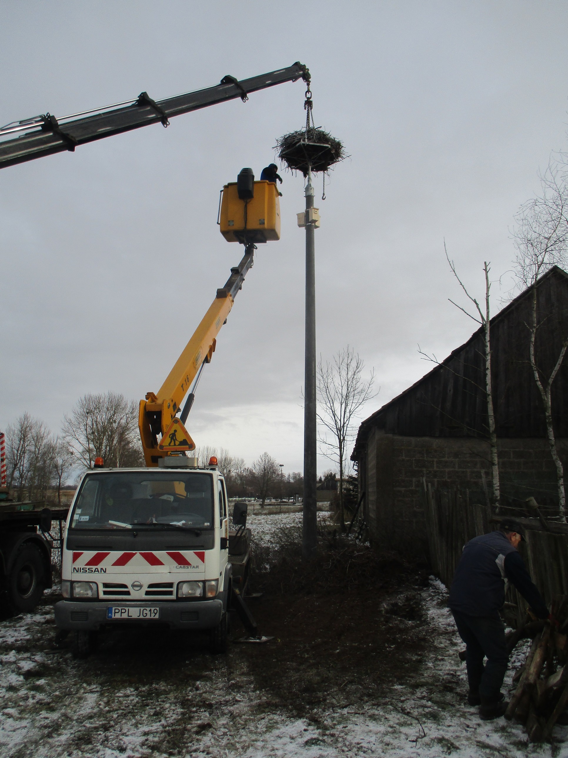 Współpracujemy z rolnikami przenosząc gniazda ze starych słupów i dachów budynków na nowe słupy w miejsca gdzie są bezpieczne i jednocześnie nie przeszkadzają mieszkańcom. Pomagamy też zmniejszając stare i ciężkie bocianie konstrukcje zagrożone zawaleniem, które nierzadko osiągają tonę!
