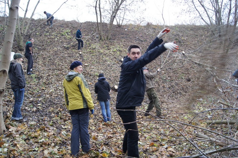 Wczoraj tj. 05.11.2012 pracownicy biura, członkowie zarządu oraz wolontariusze – sympatycy PTOP, wspólnie wycinali zakrzaczenia w dolinie Biebrzy. Przy okazji z działki trzeba było zebrać kilka worków śmieci. Odkrzaczanie jest zabiegiem często stosowanym, jeżeli chcemy zachować siedliska otwarte, bardzo ważne dla wielu gatunków ptaków. Ale tym razem mieliśmy inny, nietypowy jak na towarzystwo ornitologiczne. PTOP w Wiźnie jest właścicielem części terenu, na którym znajdują się pozostałości wałów średniowiecznego zamczyska! Wybudowane w XI w., opierało się atakom Jaćwingów, Prusów i Litwinów, a obecnie niszczeje z powodu porastających go zakrzaczeń.
